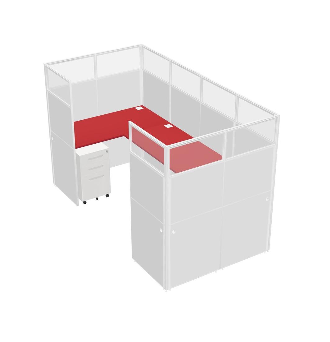 Prism Red U-shaped Panel System For 1 Person + Metal Mobile Drawers For 1 User(s)