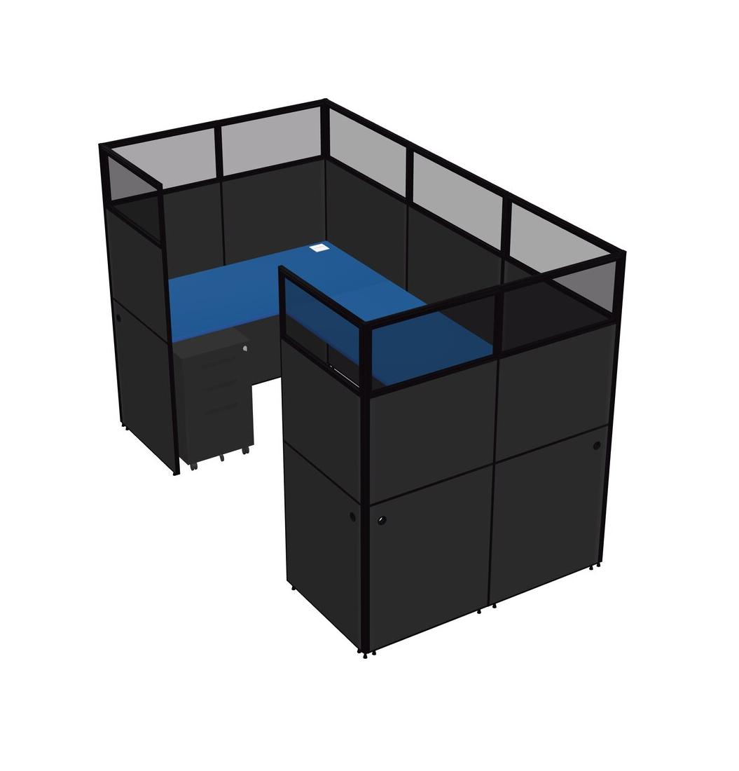 Prism Blue U-shaped Panel System For 1 Person + Metal Mobile Drawers For 1 User(s)