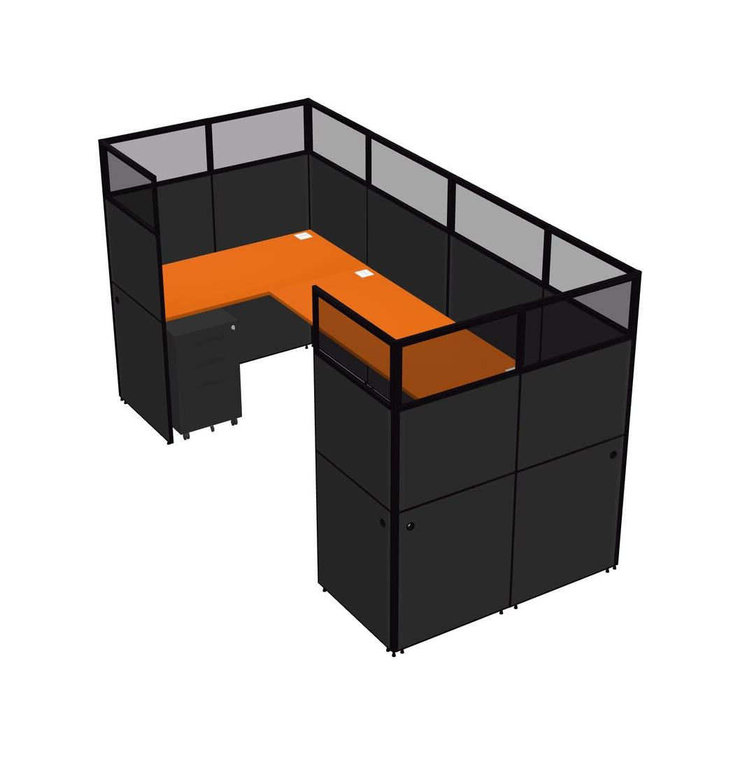 Orange U-shaped Panel System For 1 Person + Metal Mobile Drawers For 1 User(s)