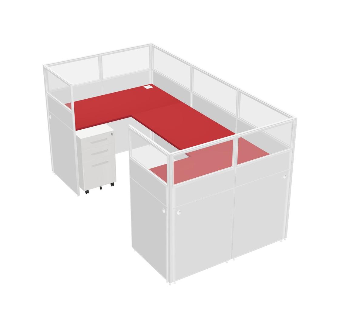 Prism Red U-shaped Panel System For 1 Person + Metal Mobile Drawers For 1 User(s)