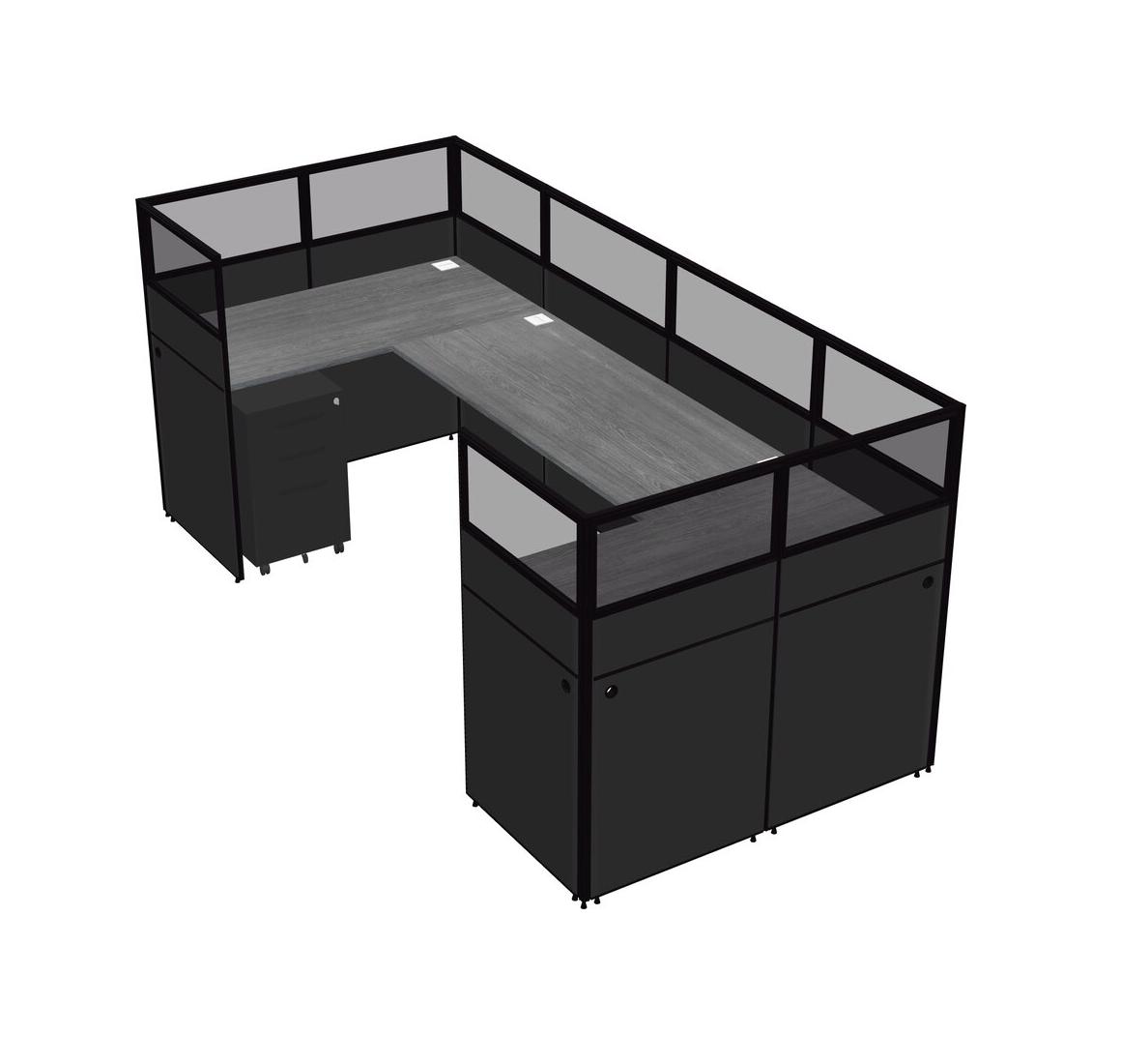 Grey U-shaped Panel System For 1 Person + Metal Mobile Drawers For 1 User(s)
