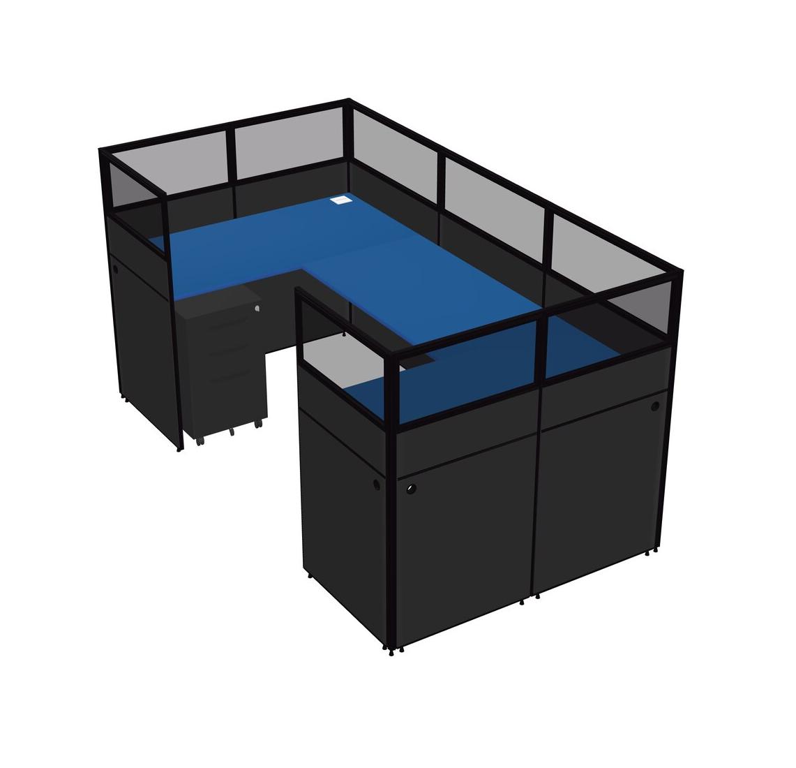 Prism Blue U-shaped Panel System For 1 Person + Metal Mobile Drawers For 1 User(s)