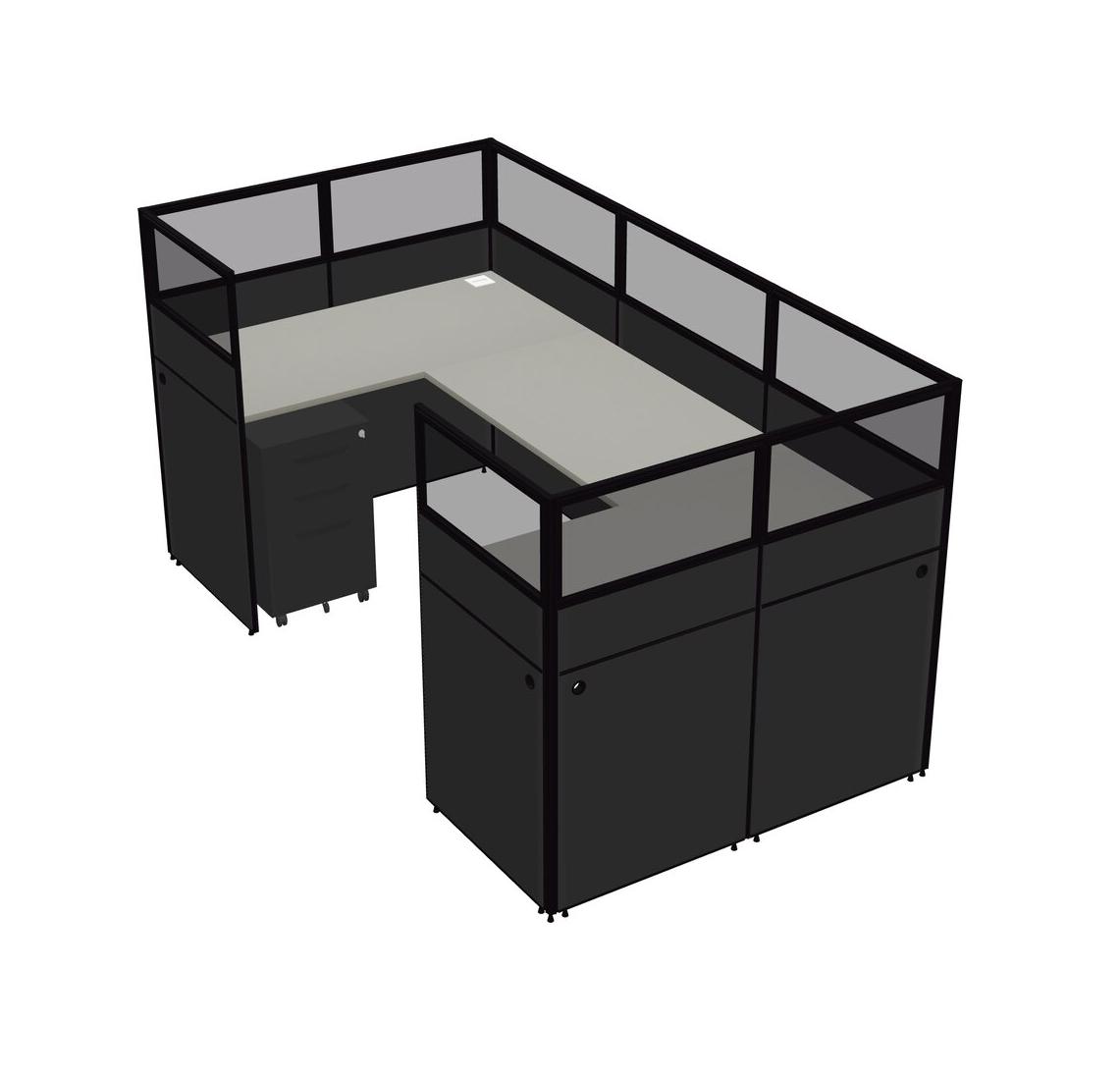 Grey Shadows U-shaped Panel System For 1 Person + Metal Mobile Drawers For 1 User(s)