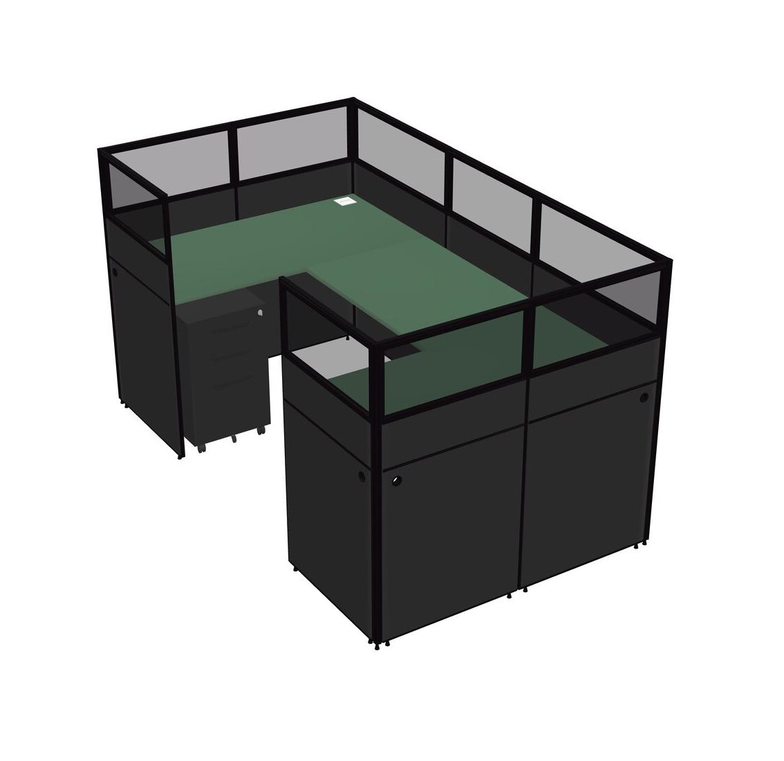 Green U-shaped Panel System For 1 Person + Metal Mobile Drawers For 1 User(s)