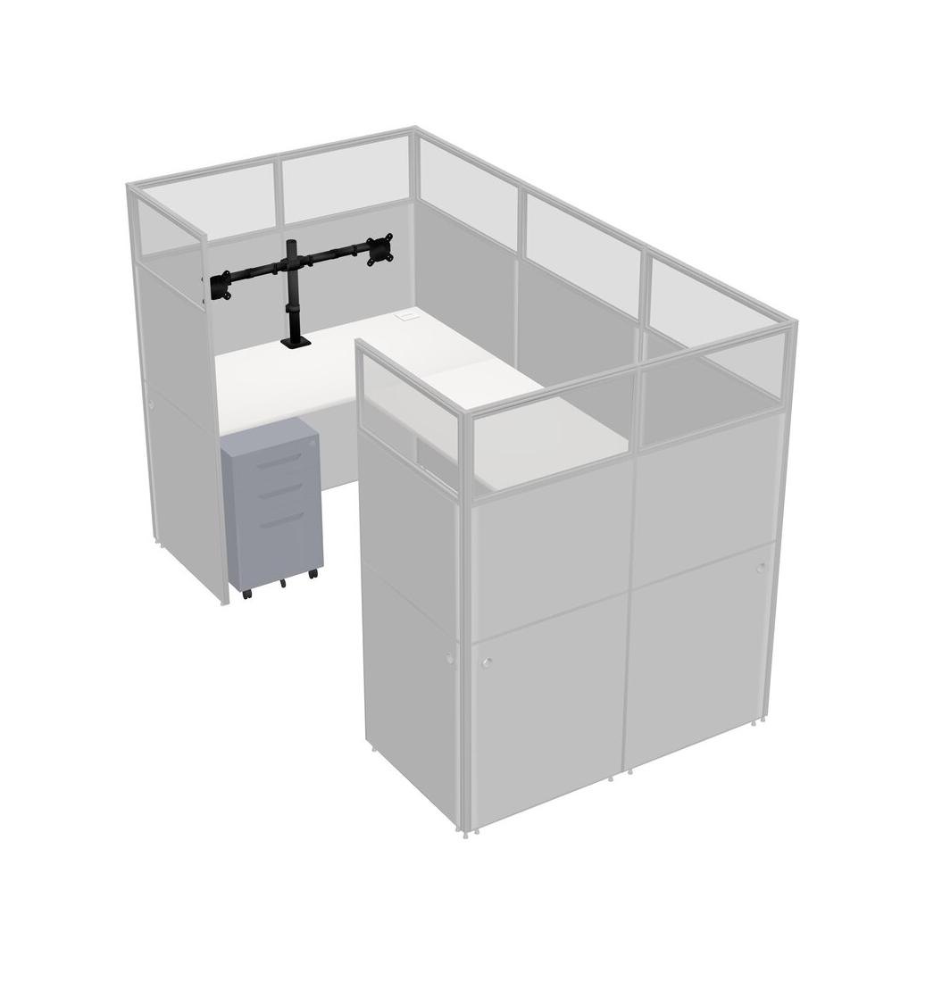 White U-shaped Panel System For 1 Person + Monitor Arm (double Arms) + Metal Mobile Drawers For 1 User(s)