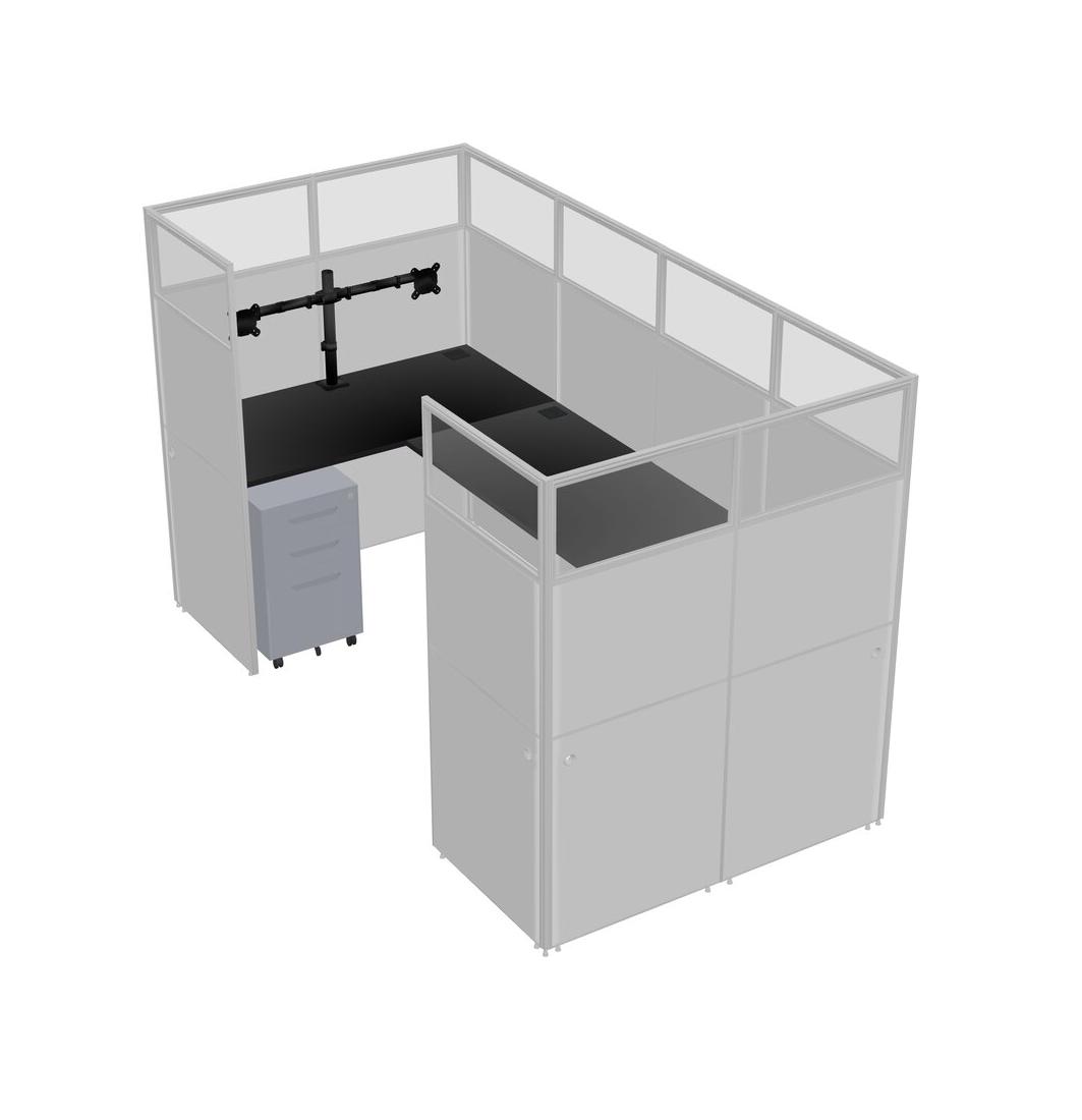Black U-shaped Panel System For 1 Person + Monitor Arm (double Arms) + Metal Mobile Drawers For 1 User(s)