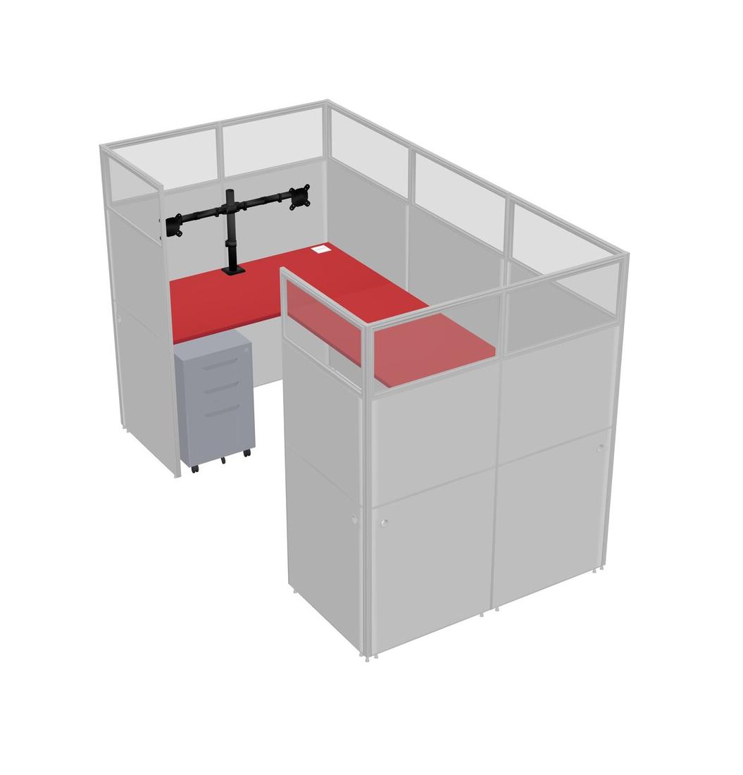 Prism Red U-shaped Panel System For 1 Person + Monitor Arm (double Arms) + Metal Mobile Drawers For 1 User(s)
