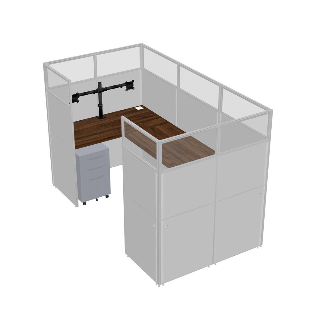 Columbia Walnut U-shaped Panel System For 1 Person + Monitor Arm (double Arms) + Metal Mobile Drawers For 1 User(s)