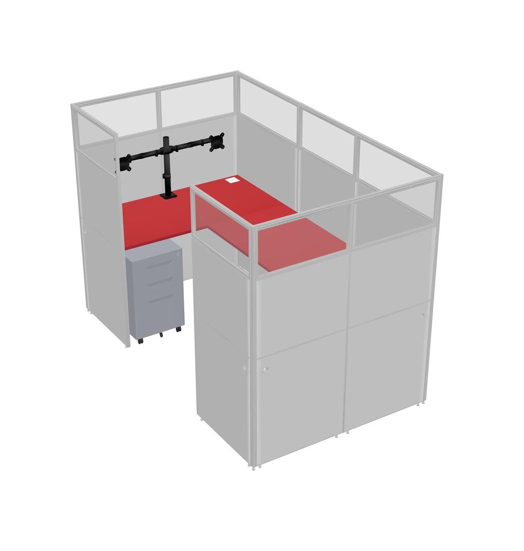 Prism Red U-shaped Panel System For 1 Person + Monitor Arm (double Arms) + Metal Mobile Drawers For 1 User(s)