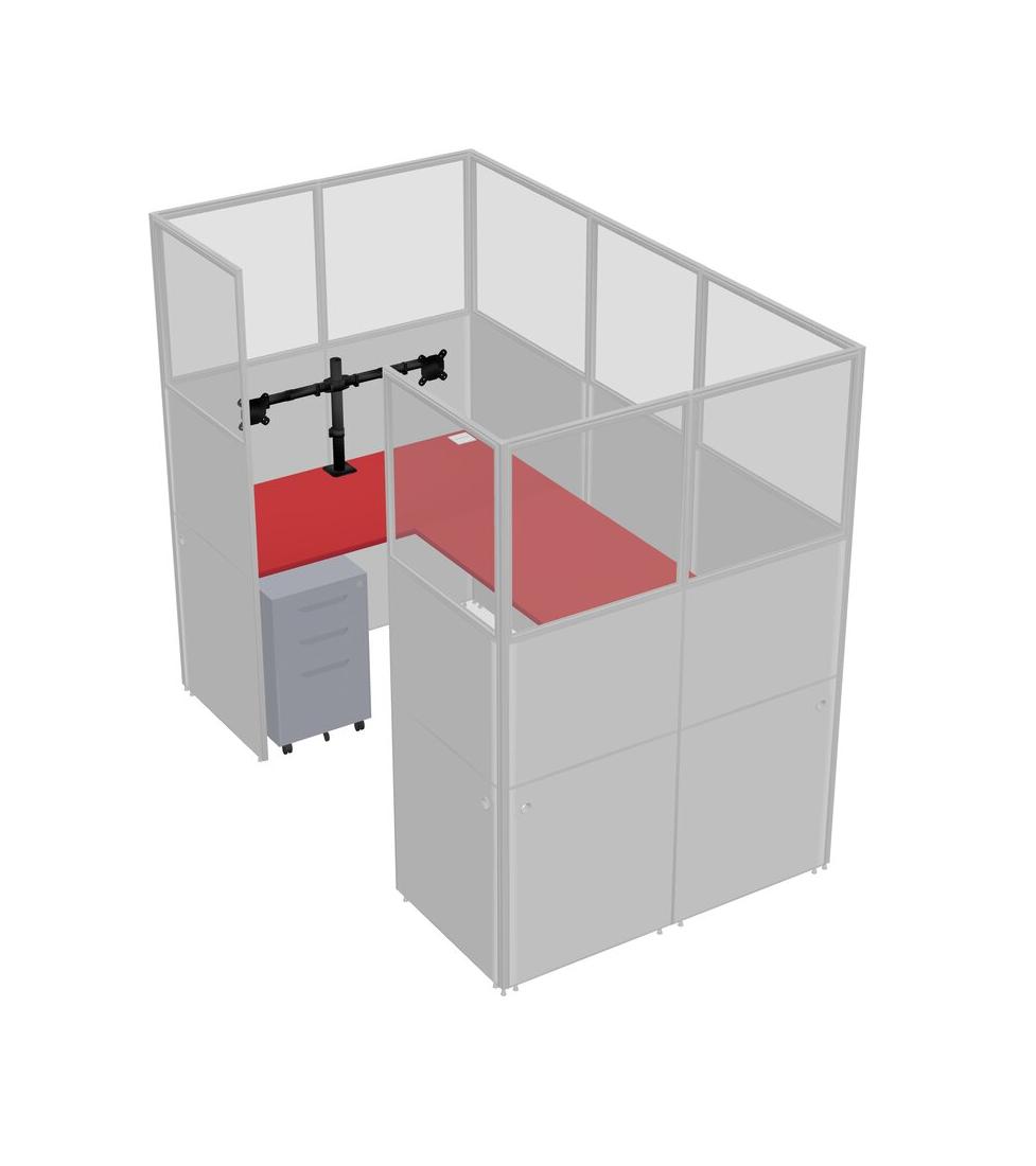 Prism Red U-shaped Panel System For 1 Person + Monitor Arm (double Arms) + Metal Mobile Drawers For 1 User(s)