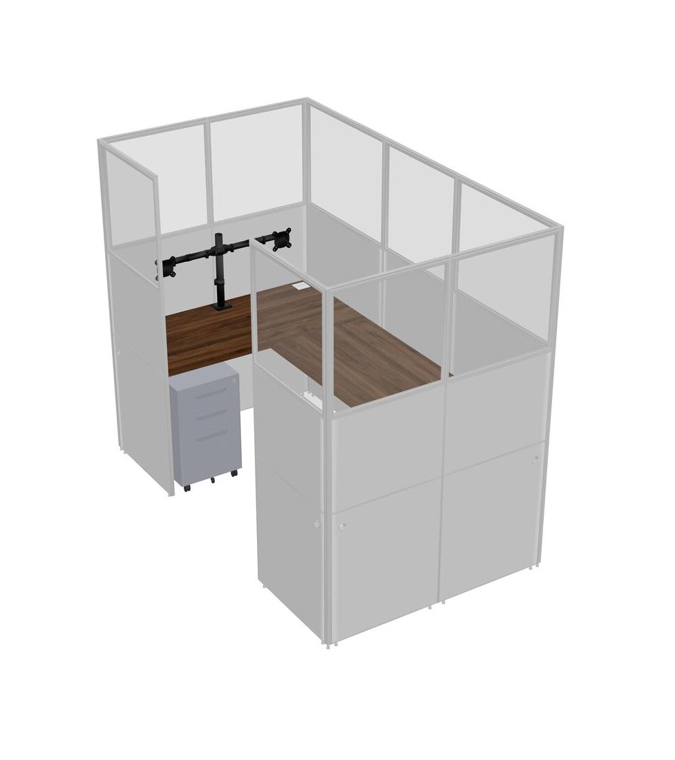 Columbia Walnut U-shaped Panel System For 1 Person + Monitor Arm (double Arms) + Metal Mobile Drawers For 1 User(s)