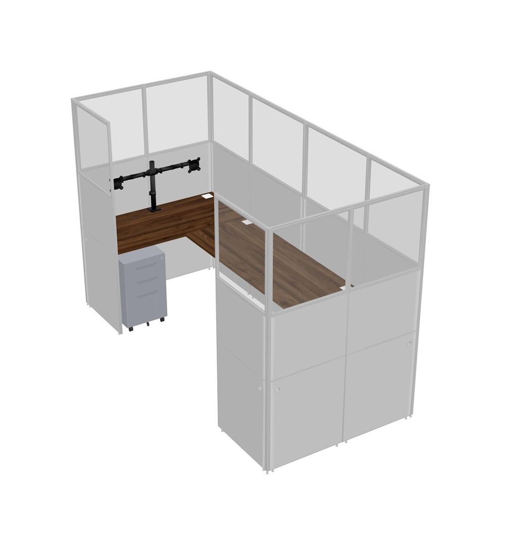 Columbia Walnut U-shaped Panel System For 1 Person + Monitor Arm (double Arms) + Metal Mobile Drawers For 1 User(s)