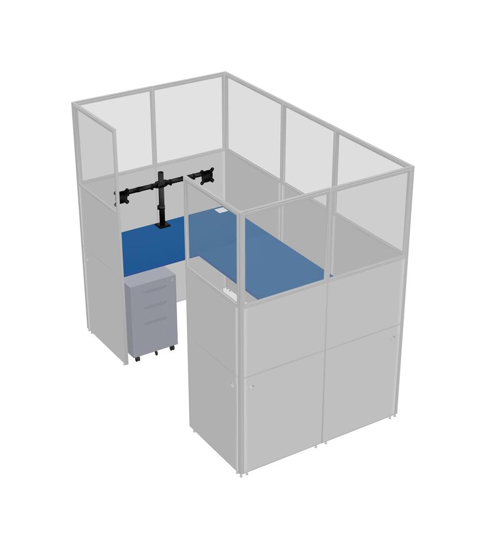 Prism Blue U-shaped Panel System For 1 Person + Monitor Arm (double Arms) + Metal Mobile Drawers For 1 User(s)