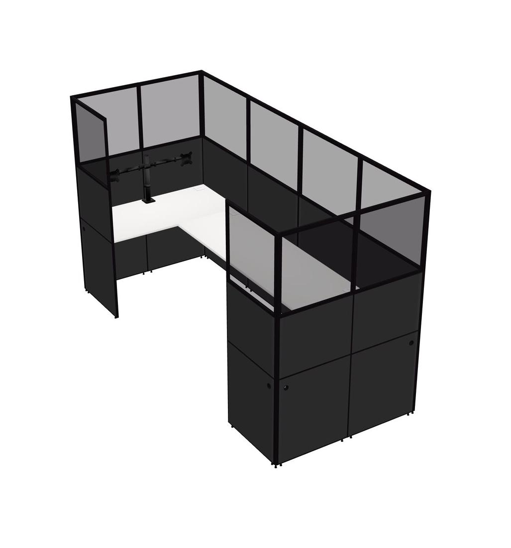 White U-shaped Panel System For 1 Person + Monitor Arm (double Arms) For 1 User(s)