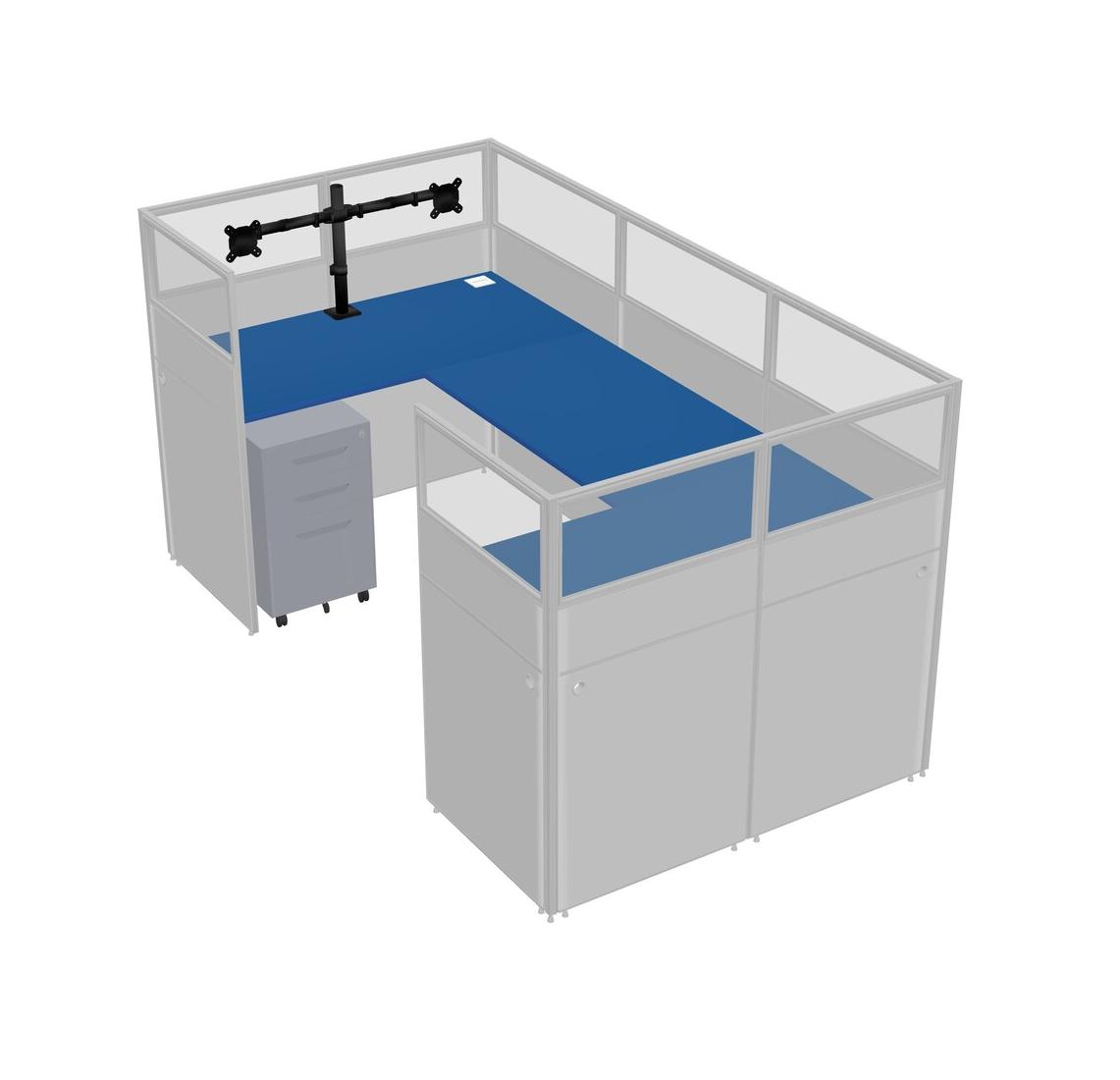 Prism Blue U-shaped Panel System For 1 Person + Monitor Arm (double Arms) + Metal Mobile Drawers For 1 User(s)