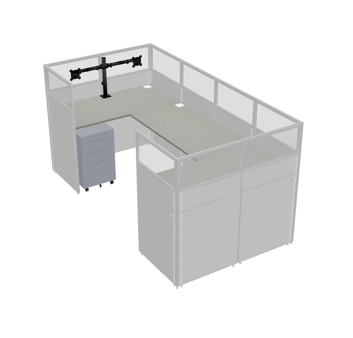 Grey Shadows U-shaped Panel System For 1 Person + Monitor Arm (double Arms) + Metal Mobile Drawers For 1 User(s)