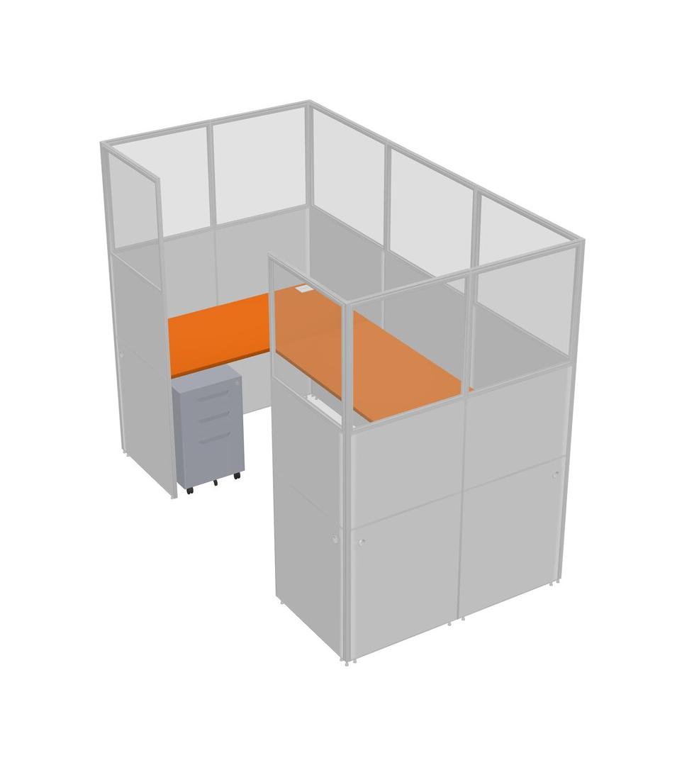 Orange U-shaped Panel System For 1 Person + Metal Mobile Drawers For 1 User(s)