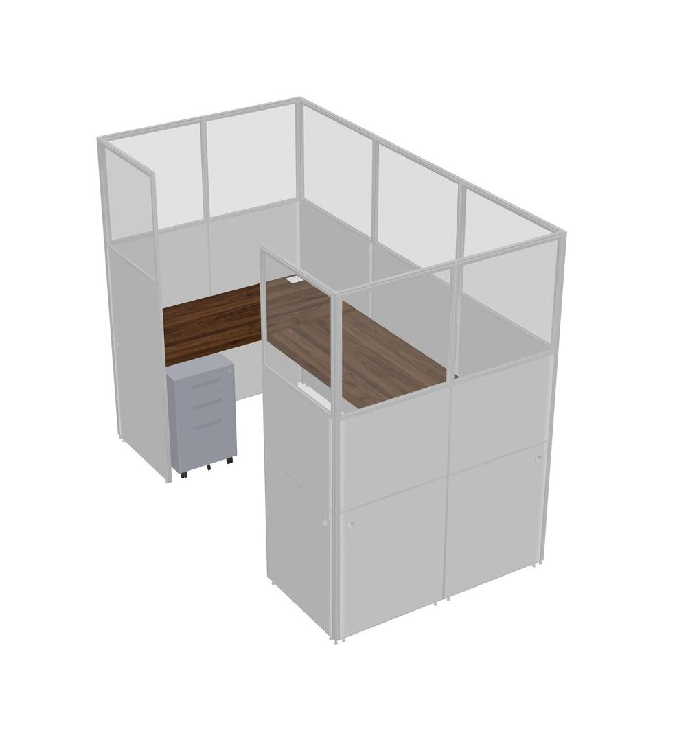 Columbia Walnut U-shaped Panel System For 1 Person + Metal Mobile Drawers For 1 User(s)