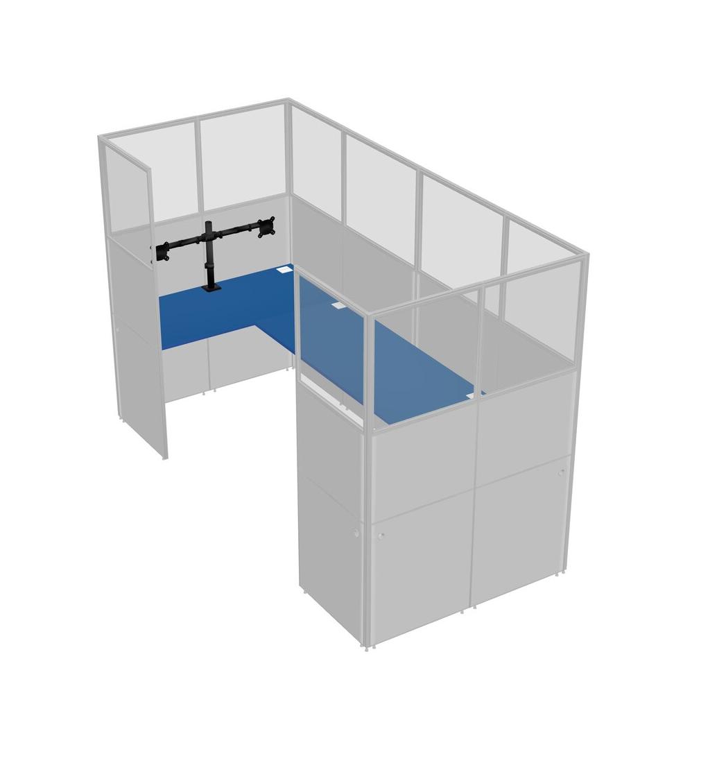 Prism Blue U-shaped Panel System For 1 Person + Monitor Arm (double Arms) For 1 User(s)