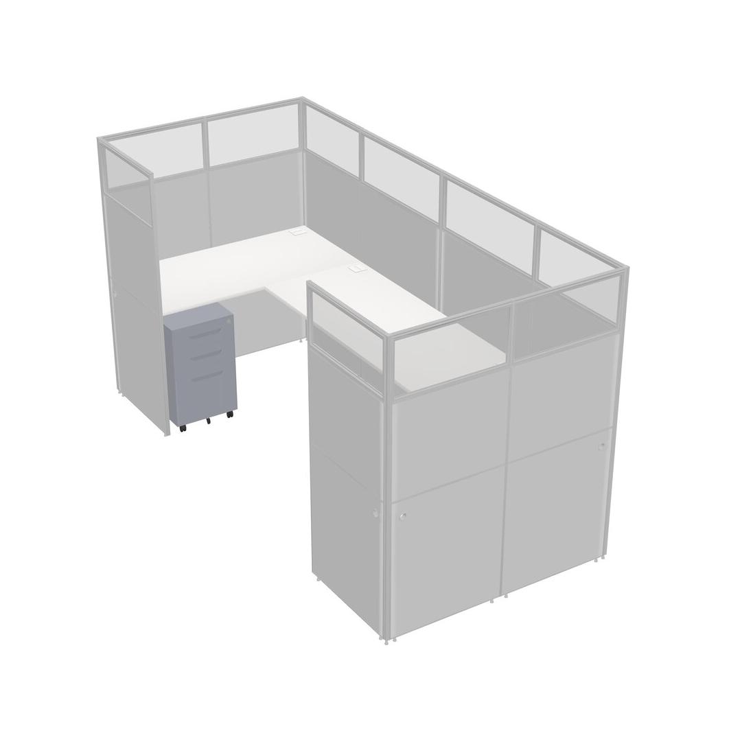 White U-shaped Panel System For 1 Person + Metal Mobile Drawers For 1 User(s)