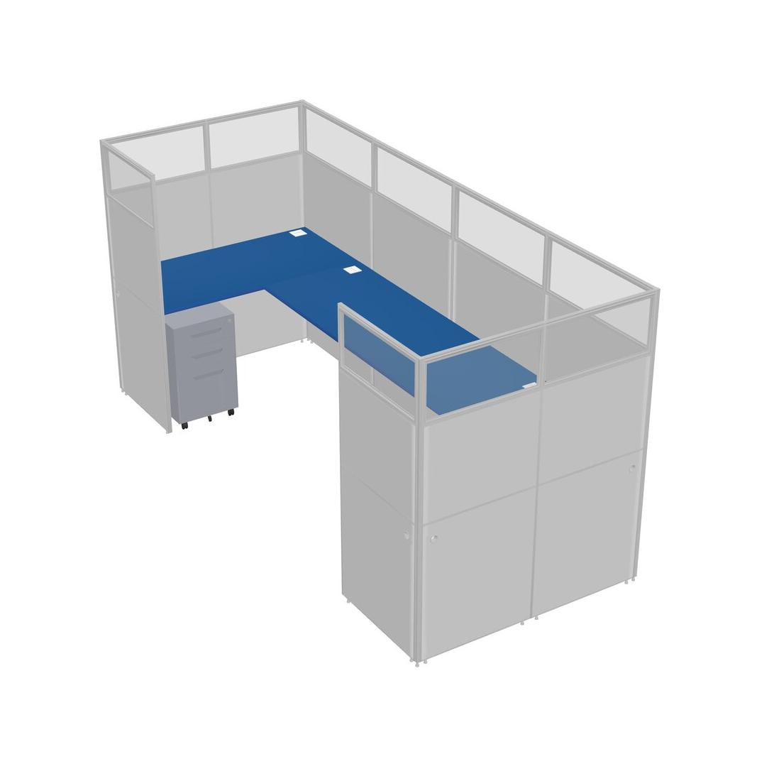 Prism Blue U-shaped Panel System For 1 Person + Metal Mobile Drawers For 1 User(s)
