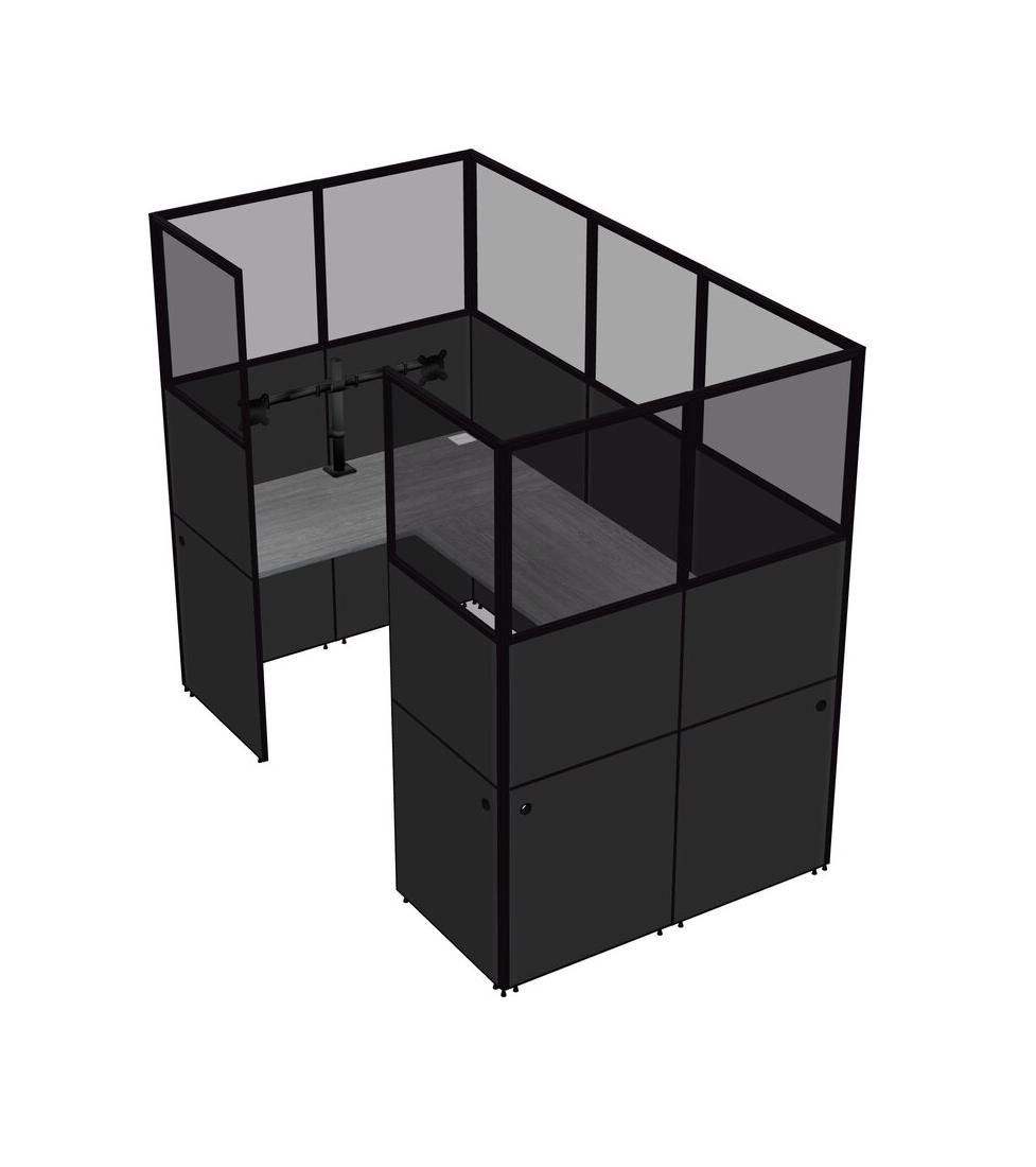 Grey U-shaped Panel System For 1 Person + Monitor Arm (double Arms) For 1 User(s)