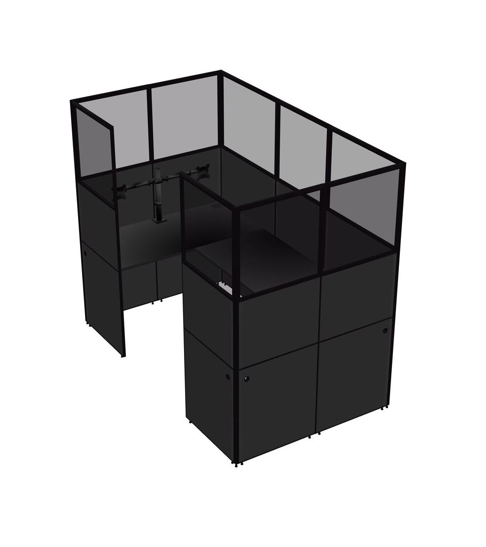 Black U-shaped Panel System For 1 Person + Monitor Arm (double Arms) For 1 User(s)