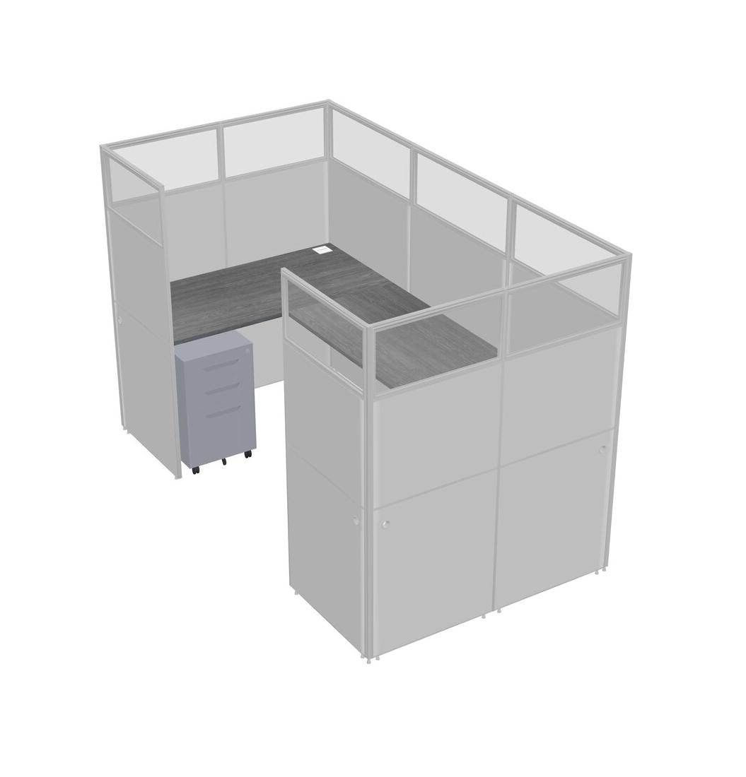 Grey U-shaped Panel System For 1 Person + Metal Mobile Drawers For 1 User(s)
