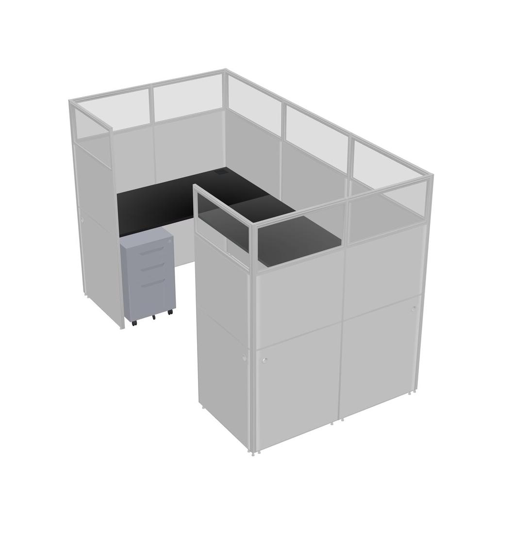 Black U-shaped Panel System For 1 Person + Metal Mobile Drawers For 1 User(s)