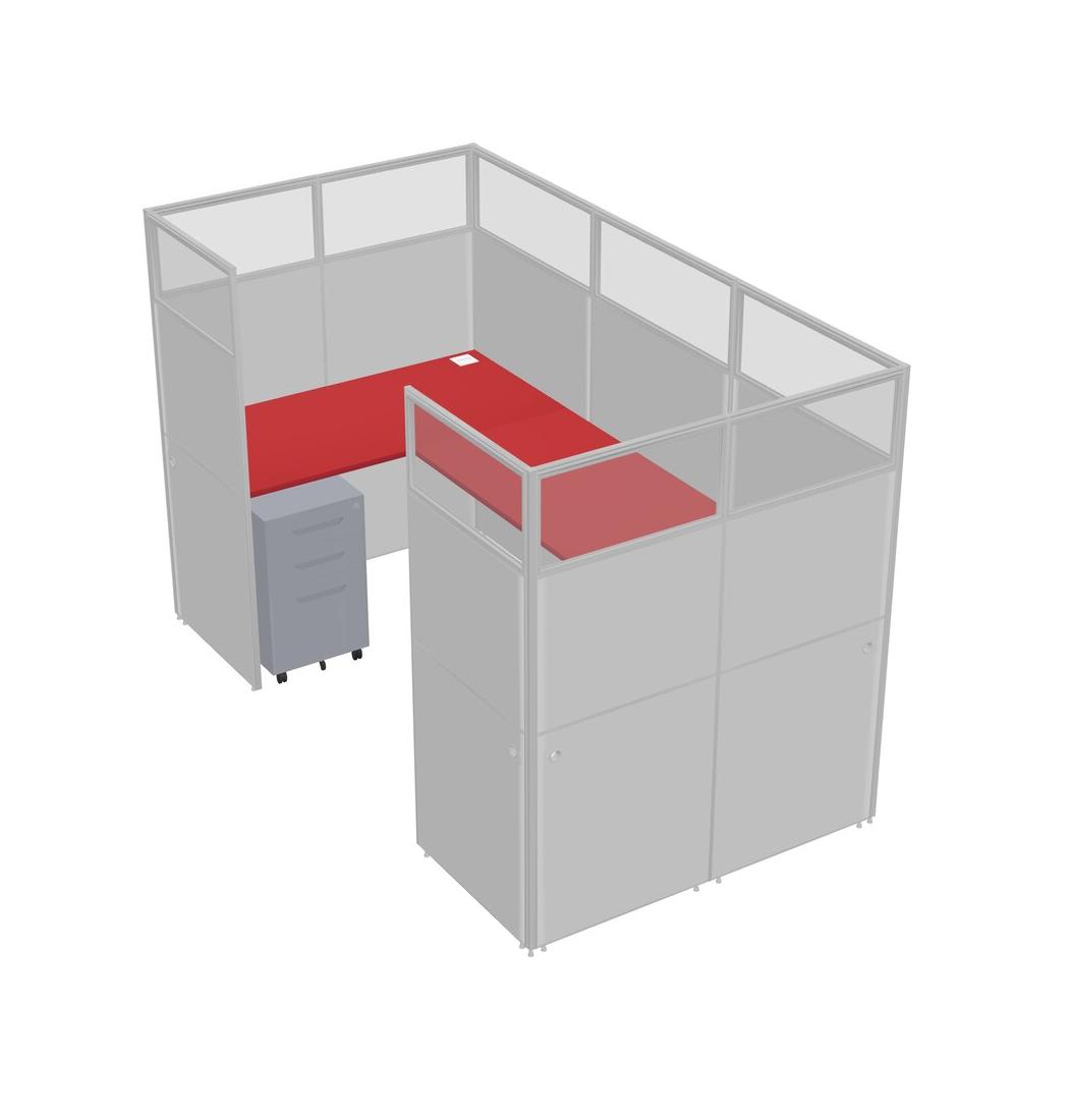 Prism Red U-shaped Panel System For 1 Person + Metal Mobile Drawers For 1 User(s)