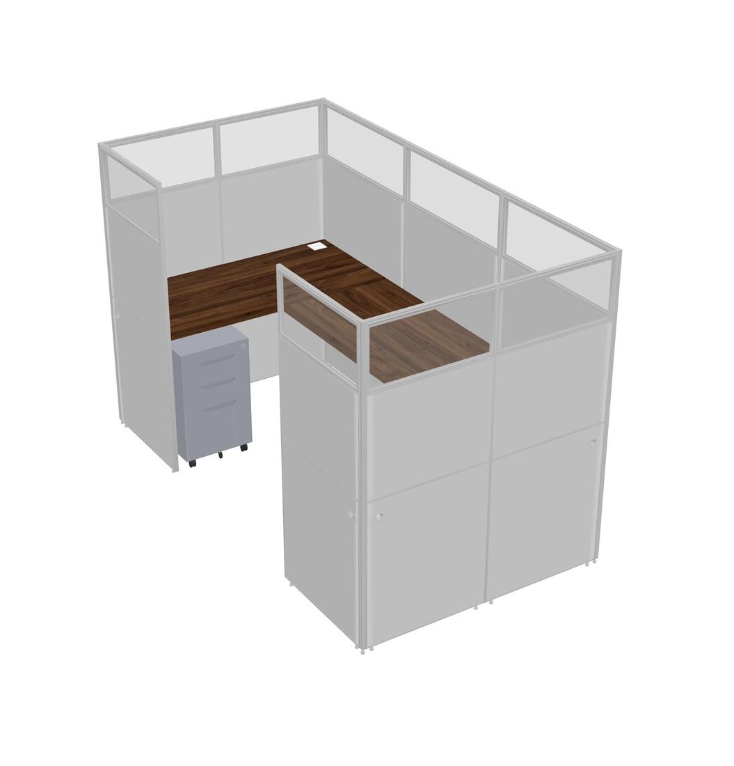 Columbia Walnut U-shaped Panel System For 1 Person + Metal Mobile Drawers For 1 User(s)