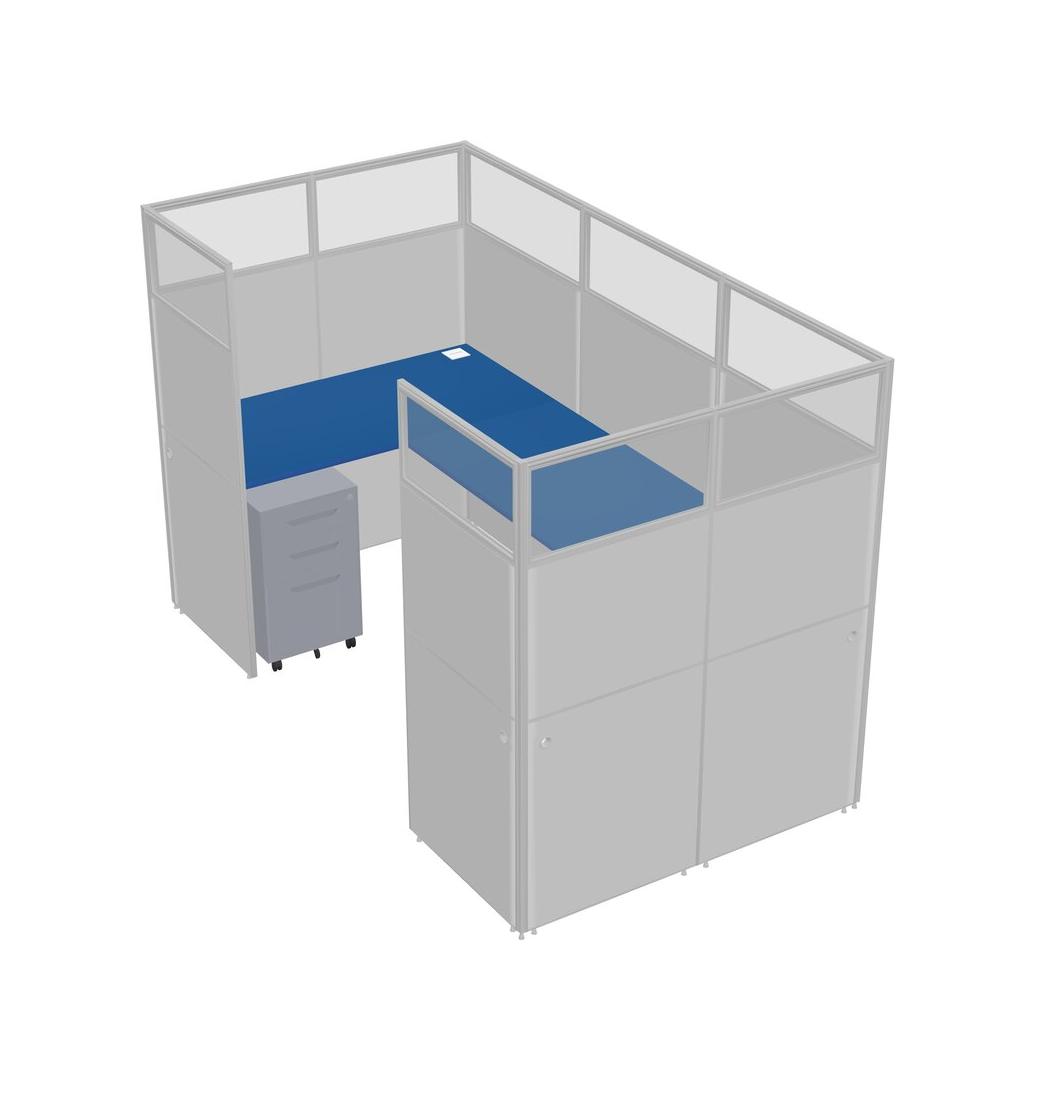 Prism Blue U-shaped Panel System For 1 Person + Metal Mobile Drawers For 1 User(s)