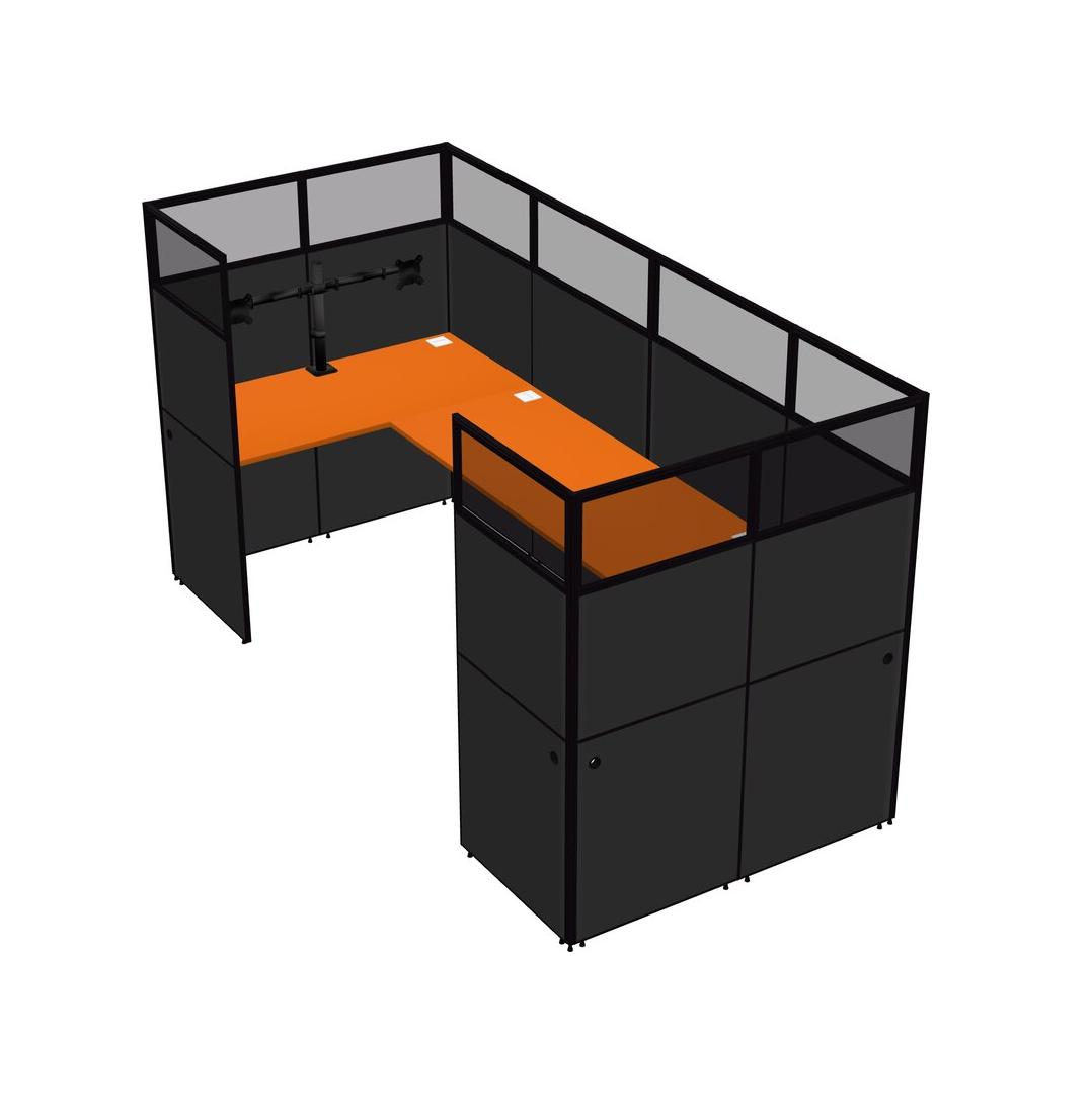 Orange U-shaped Panel System For 1 Person + Monitor Arm (double Arms) For 1 User(s)