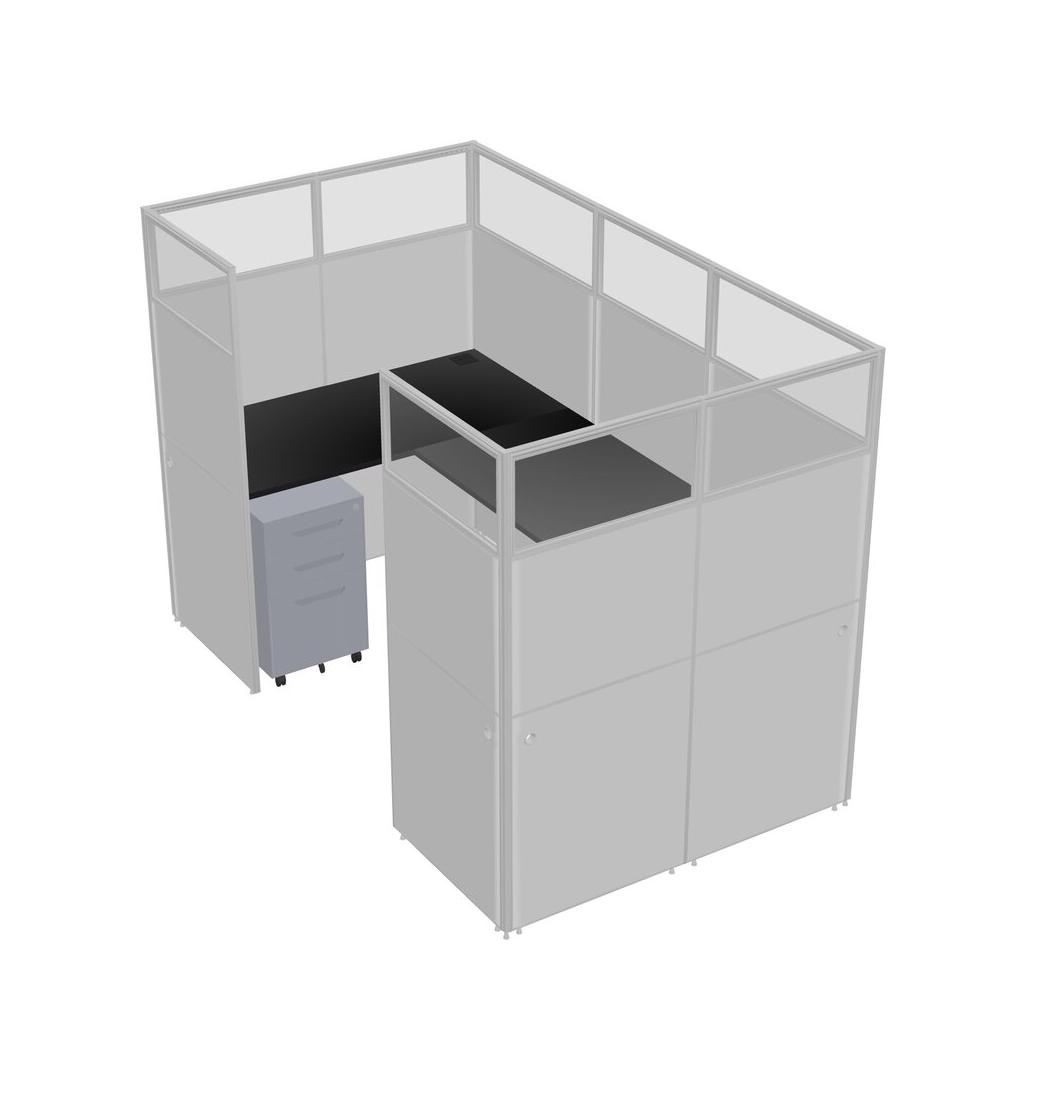 Black U-shaped Panel System For 1 Person + Metal Mobile Drawers For 1 User(s)