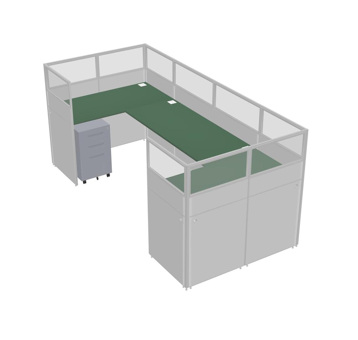 Green U-shaped Panel System For 1 Person + Metal Mobile Drawers For 1 User(s)