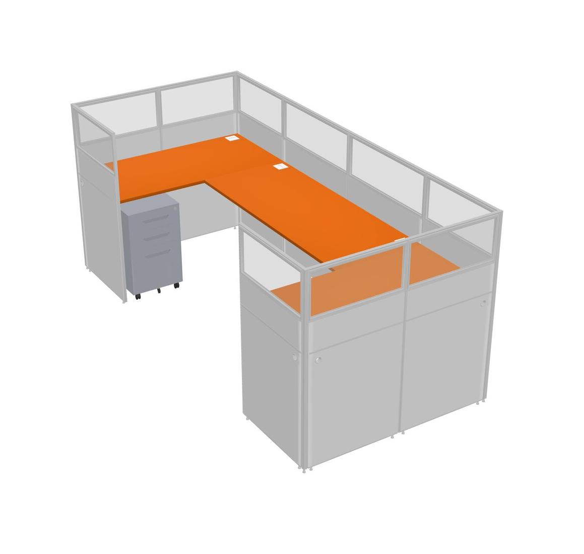 Orange U-shaped Panel System For 1 Person + Metal Mobile Drawers For 1 User(s)