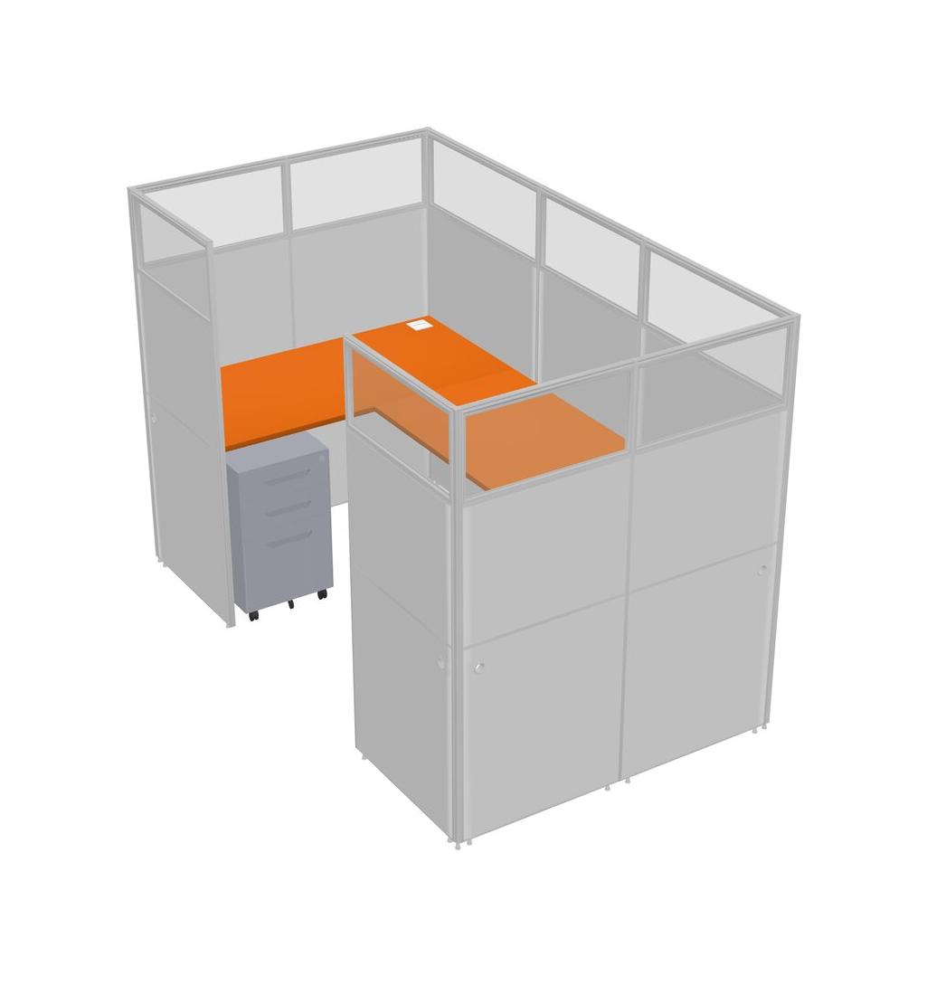 Orange U-shaped Panel System For 1 Person + Metal Mobile Drawers For 1 User(s)