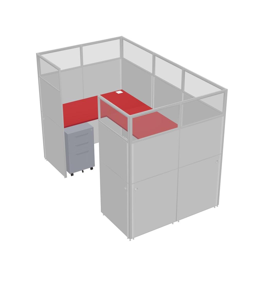 Prism Red U-shaped Panel System For 1 Person + Metal Mobile Drawers For 1 User(s)