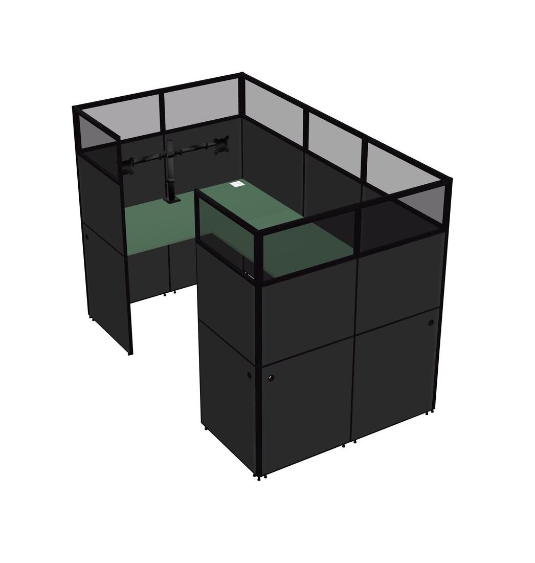 Green U-shaped Panel System For 1 Person + Monitor Arm (double Arms) For 1 User(s)
