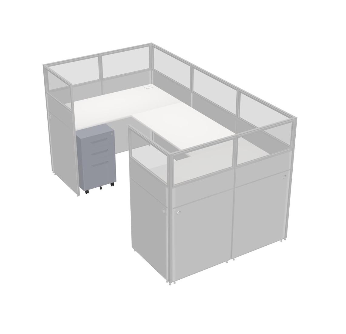 White U-shaped Panel System For 1 Person + Metal Mobile Drawers For 1 User(s)