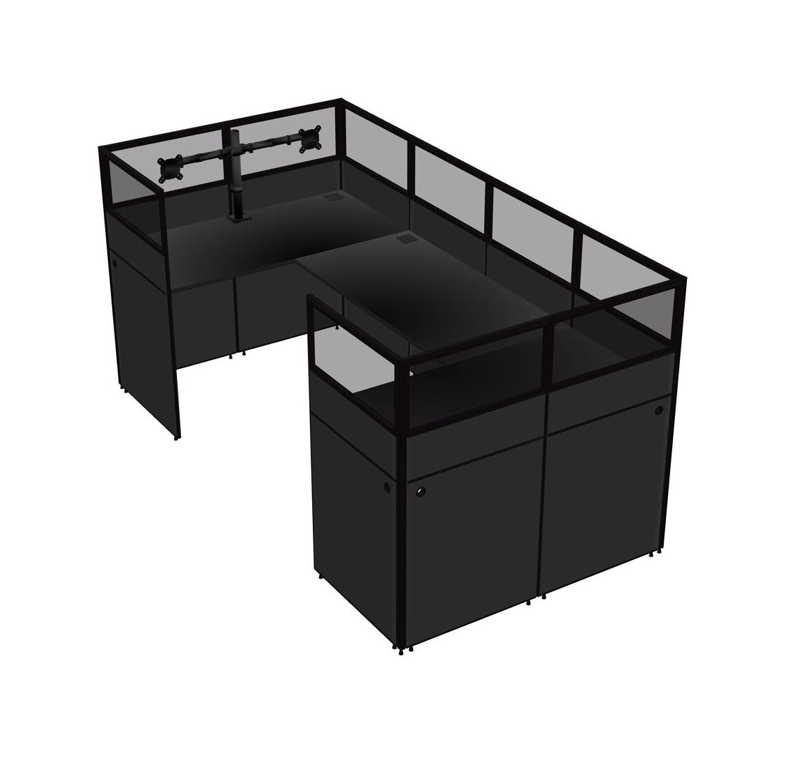Black U-shaped Panel System For 1 Person + Monitor Arm (double Arms) For 1 User(s)