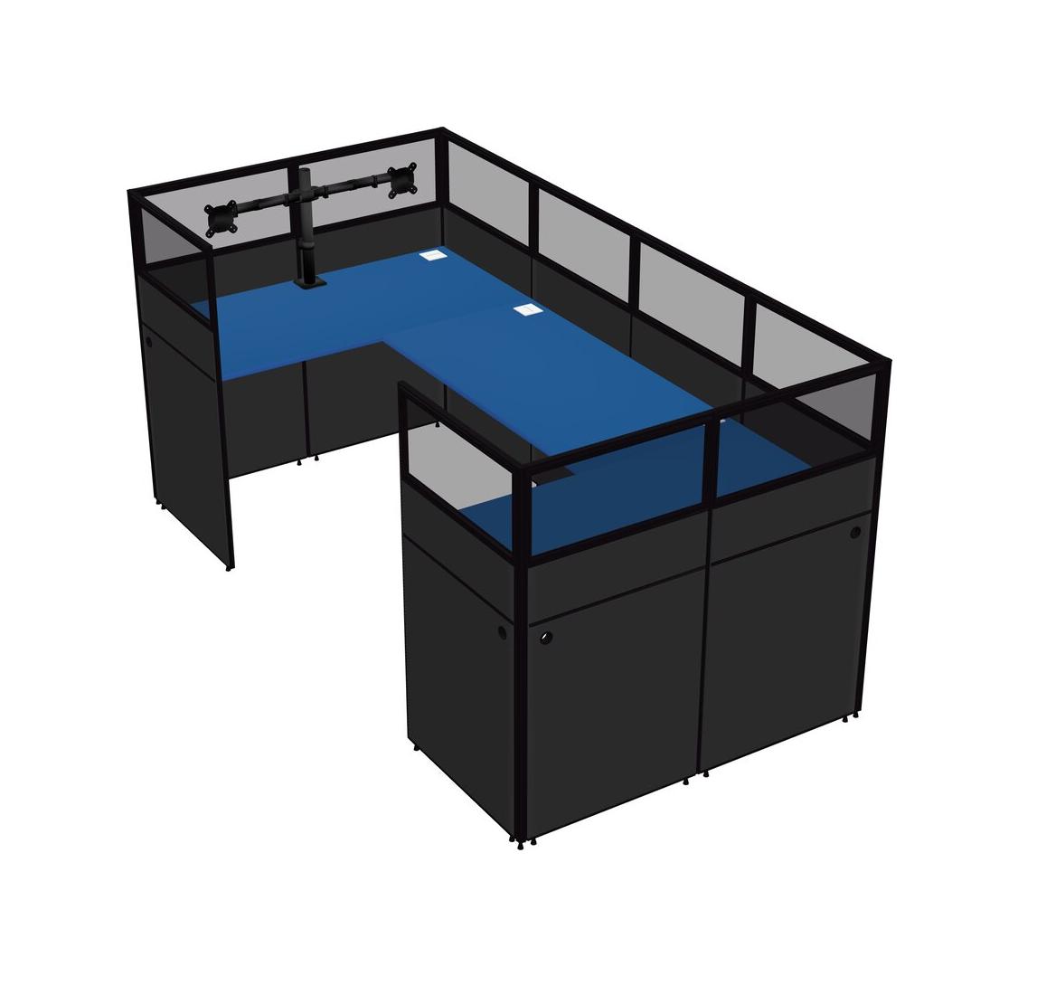 Prism Blue U-shaped Panel System For 1 Person + Monitor Arm (double Arms) For 1 User(s)