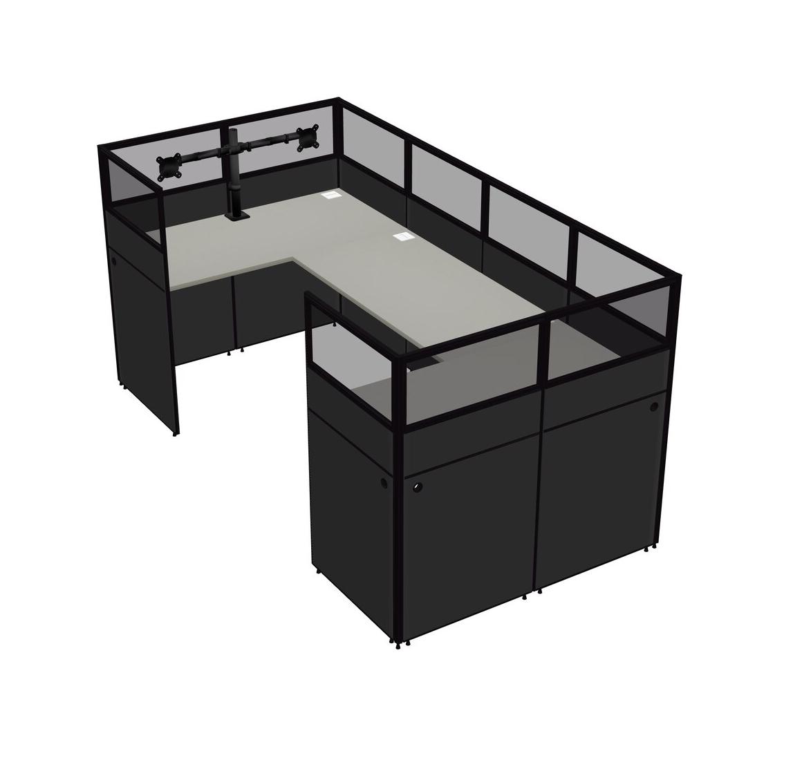 Grey Shadows U-shaped Panel System For 1 Person + Monitor Arm (double Arms) For 1 User(s)