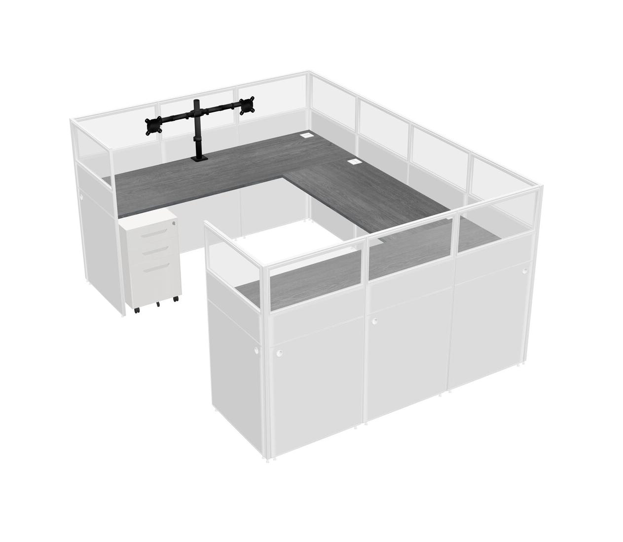 Grey U-shaped Panel System For 1 Person + Monitor Arm (double Arms) + Metal Mobile Drawers For 1 User(s)