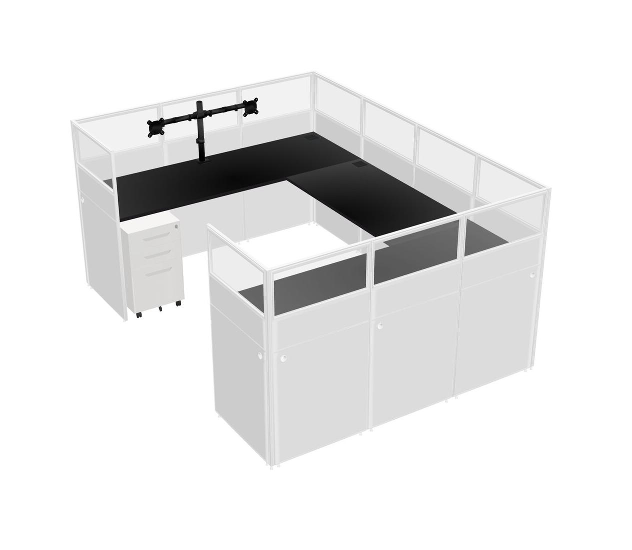 Black U-shaped Panel System For 1 Person + Monitor Arm (double Arms) + Metal Mobile Drawers For 1 User(s)