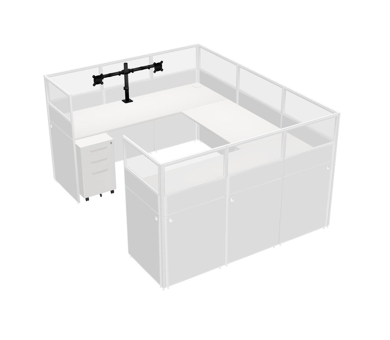 White U-shaped Panel System For 1 Person + Monitor Arm (double Arms) + Metal Mobile Drawers For 1 User(s)