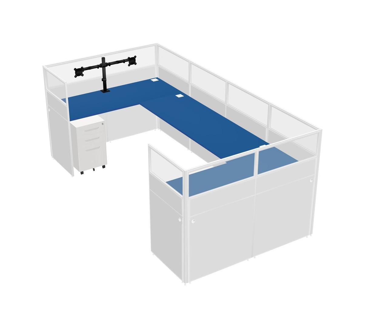 Prism Blue U-shaped Panel System For 1 Person + Monitor Arm (double Arms) + Metal Mobile Drawers For 1 User(s)