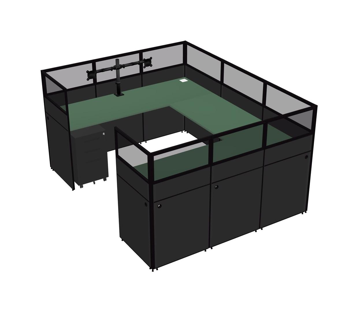 Green U-shaped Panel System For 1 Person + Monitor Arm (double Arms) + Metal Mobile Drawers For 1 User(s)