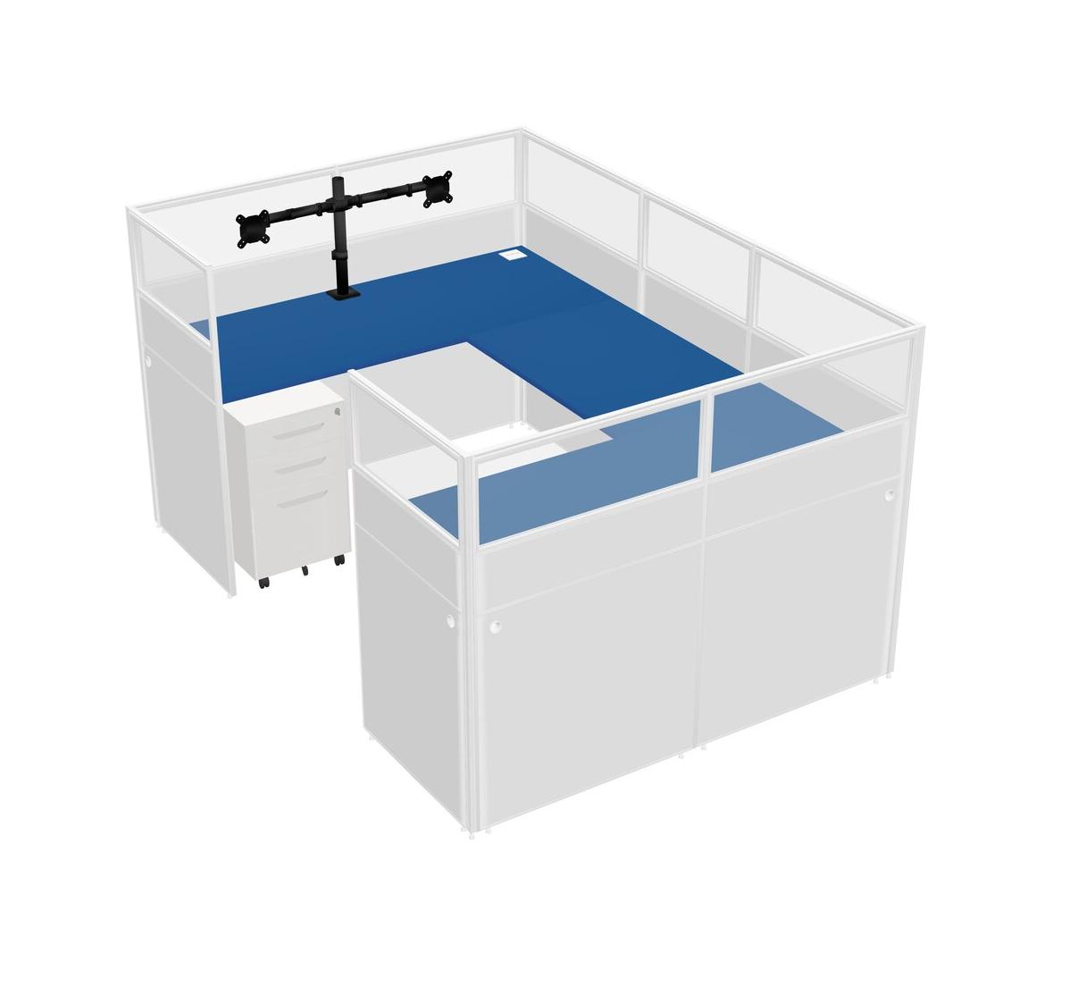 Prism Blue U-shaped Panel System For 1 Person + Monitor Arm (double Arms) + Metal Mobile Drawers For 1 User(s)