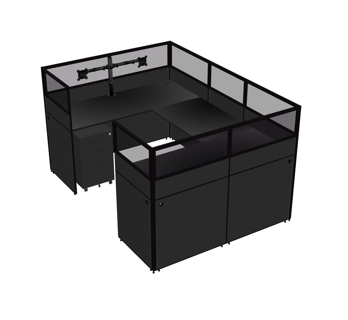 Black U-shaped Panel System For 1 Person + Monitor Arm (double Arms) + Metal Mobile Drawers For 1 User(s)